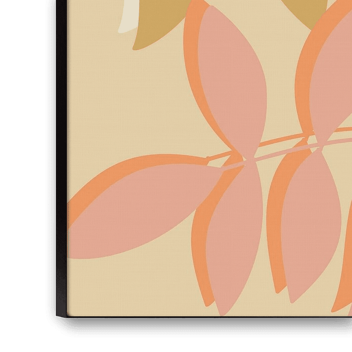 Cette œuvre d'art moderne présente des feuilles simples et abstraites dans des couleurs pastel chaudes, parfaites pour un style de vie minimaliste. Avec son thème botanique et son ambiance romantique, cette œuvre d'art est un excellent complément à toute maison d'inspiration scandinave ou rétro. Son design simple mais élégant permet de l'intégrer facilement dans n'importe quelle pièce.
