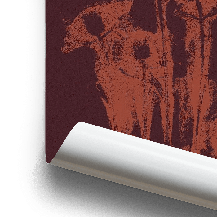 À propos de ‘Art botanique moderne. Fleurs en terra sur fond rouge vin.’ par Dina Dankers