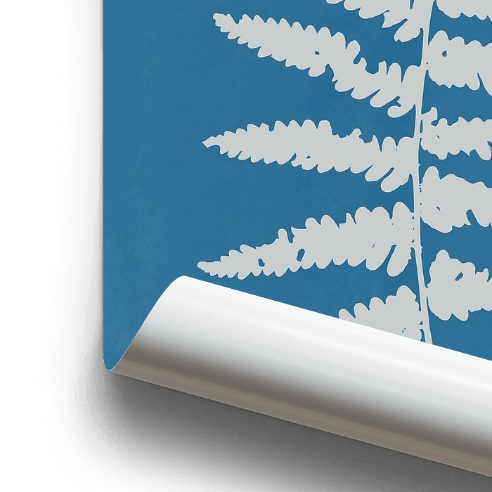 Achetez cette œuvre d'art moderne Art botanique moderne. Fougère en blanc sur bleu par Dina Dankers sur toile, aluminium, ArtFrame ou photographie (encadrée), impression d'art en haute qualité et tout format.