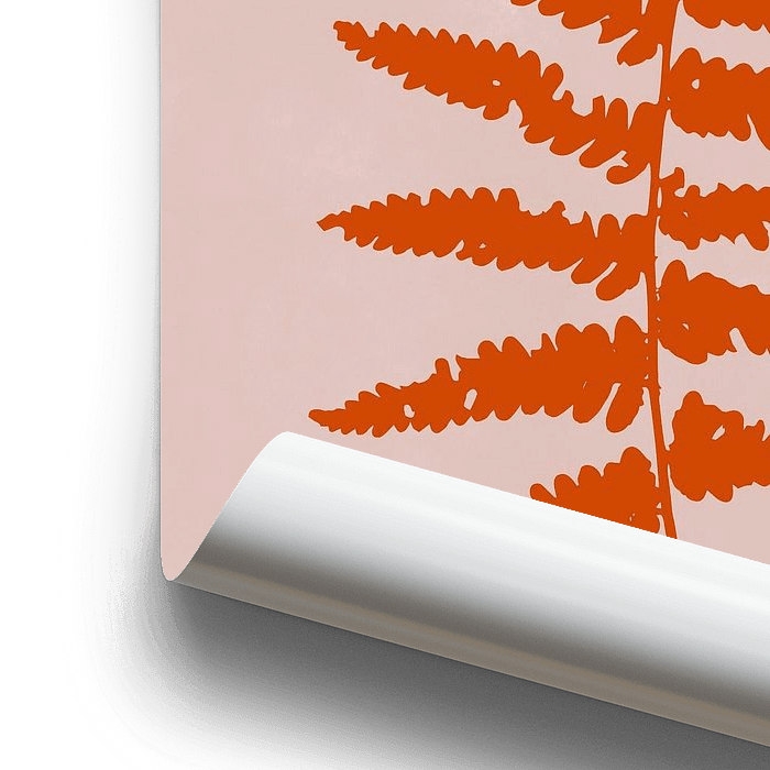 Achetez cette œuvre d'art moderne Art botanique moderne. Fougère en rouge terracotta sur rose par Dina Dankers sur toile, aluminium, ArtFrame ou photographie (encadrée), impression d'art en haute qualité et tout format.