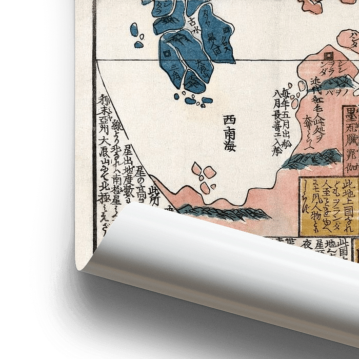 Carte du monde vintage en japonais (1870-1900). L'original se trouve à la Bibliothèque du Congrès. Style de vie japonais, bohème, rural, nouveau rural, minimaliste, basique, scandinave. Parfait pour un salon, une chambre à coucher, une salle d'étude, une salle de travail ou un hall.