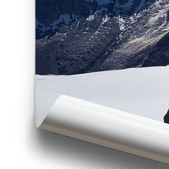 La photo montre un groupe de montagne en haut du massif du Mont-Blanc, à plus de 3000 mètres d'altitude. On y voit une cordée d'alpinistes en train de descendre. Derrière eux s'étend une mer de nuages qui recouvre les vallées comme une couverture molle. Seuls quelques sommets escarpés percent la surface blanche et se dressent dans l'air bleu et clair. Le paysage enneigé respire le calme et la majesté - un moment entre ciel et terre où la nature et le silence se fondent en une unité impressionnante.