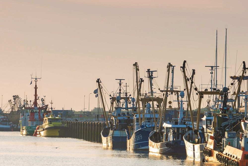Dans le port de Lauwersoog, ces bateaux de pêche sont prêts à partir pour la mer des Wadden à la recherche de crevettes. C'est l'été, le soleil vient de se lever et la marée est presque assez favorable pour aller pêcher. Quelques pêcheurs se préparent sur le quai. L'ambiance est bonne, les hommes ont hâte d'y être....