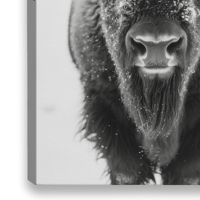 Plongez dans la beauté brute des prairies avec cette impressionnante photographie en noir et blanc d'un imposant bison. La représentation détaillée de l'épaisse fourrure et la présence puissante de cet animal majestueux font entrer l'immensité et la liberté de la nature directement dans votre maison. Idéale pour les intérieurs…