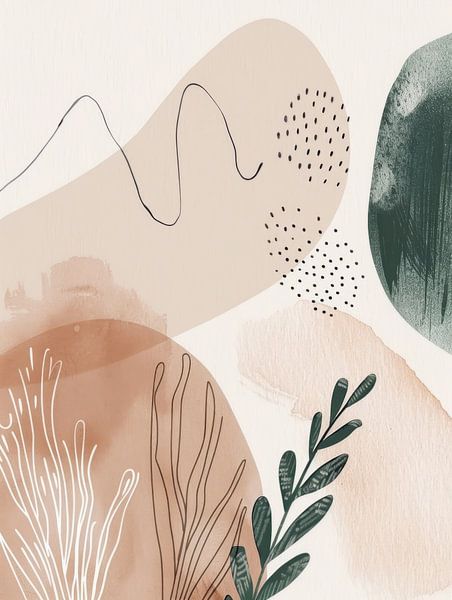 Bohème moderne dans des tons de terre avec des éléments botaniques. Dans le nouveau style campagnard. Choisissez la taille et le matériau de cette œuvre et faites-en un véritable accroche-regard pour votre intérieur.
