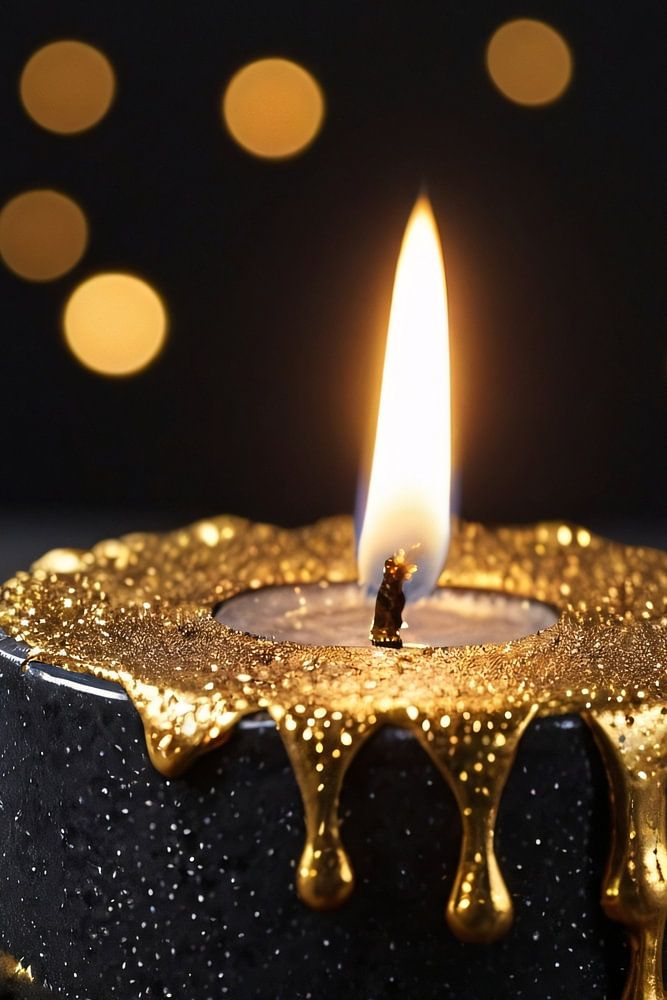 Plongez dans le monde du luxe et de la sophistication avec cette bougie enchanteresse. Le design dégage un air de classe grâce à l'interaction des tons noirs profonds et de l'or étincelant. La lumière subtile de la flamme se reflète sur les paillettes d'or, créant un effet saisissant sur fond de noir. Cette bougie est plus qu'une source de lumière, c'est une déclaration d'élégance qui donne à toute pièce une impression de richesse et d'éclat. Elle est parfaite pour les occasions spéciales où une touche de glamour est souhaitée, ou simplement pour s'offrir un objet de décoration élégant qui ne se démode jamais.