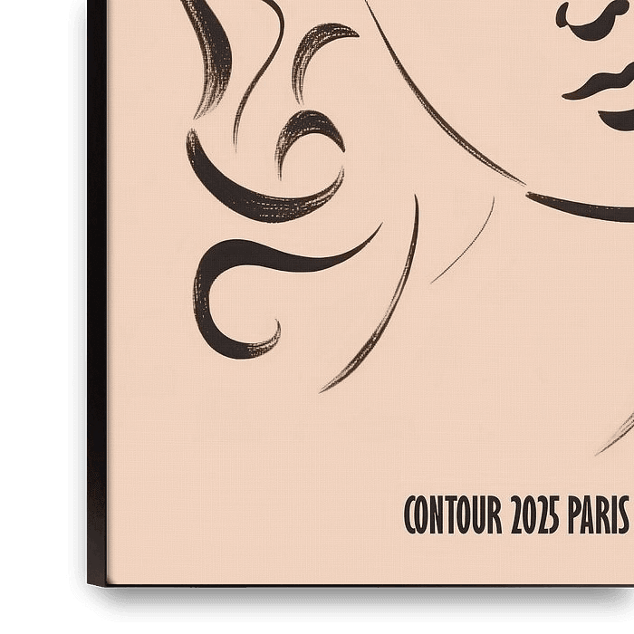Une élégance intemporelle dans la ligne la plus pure : cette affiche d'exposition "CONTOUR 2025 PARIS" célèbre l'art du dessin de portrait minimaliste. Les lignes fluides à l'encre et les boucles ludiques rappellent directement les légendaires lithographies de Matisse des années 1940. Les couleurs monochromes sur un beige chaud…