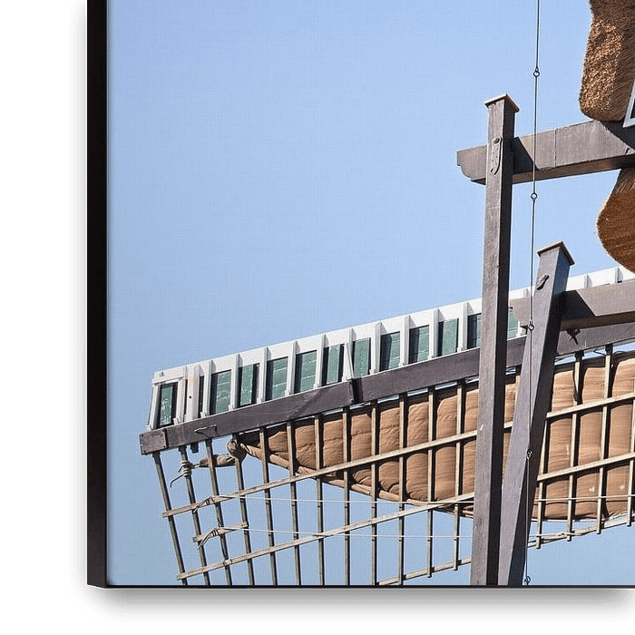 Détail de l'arrière de la coiffe d'un moulin à vent dans le Kinderdijk, en Hollande méridionale.