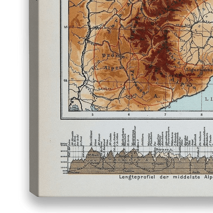 Acheter ce illustration Carte ancienne des Alpes avec pics montagneux par Studio Wunderkammer sur toile, aluminium, ArtFrame ou photographie (encadrée), impression d'art en haute qualité et tout format.