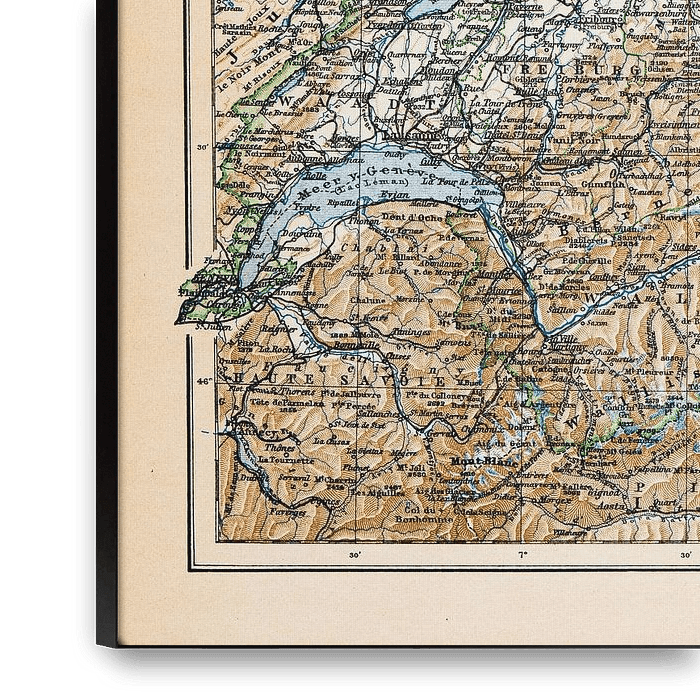 Carte ancienne de la Suisse datant de 1900. La carte est en couleur.