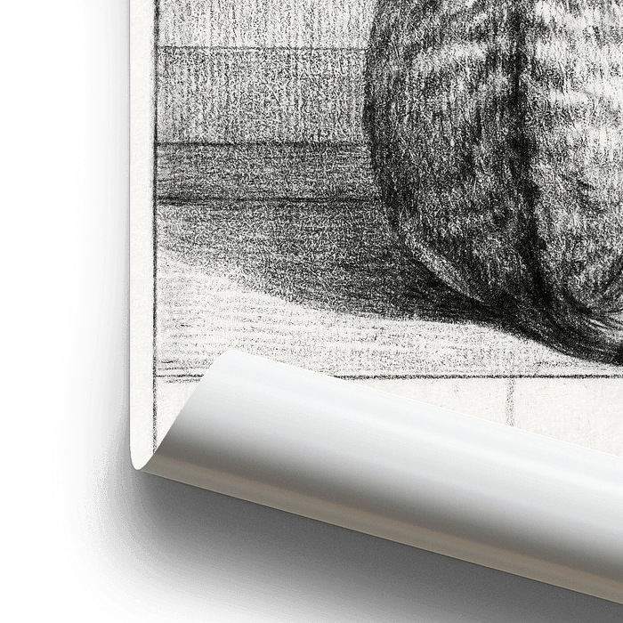 Chat assis, de dos (1812) dessin de Jean Bernard. L'original se trouve au Rijksmuseum. chat, dessin, esquisse, animaux, Jean Bernard, vieux maître, Rijksmuseum, noir et blanc,