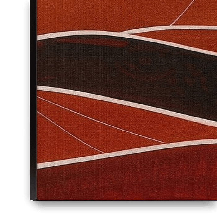 Cette œuvre capture la tranquillité et la simplicité des collines ondulantes dans des tons de terre chauds. Les lignes douces et les différentes nuances de brun et de rouge créent un sentiment de mouvement et d'harmonie, comme si les collines ondulaient sans fin dans le paysage. Les lignes blanches ajoutent une texture subtile mais…