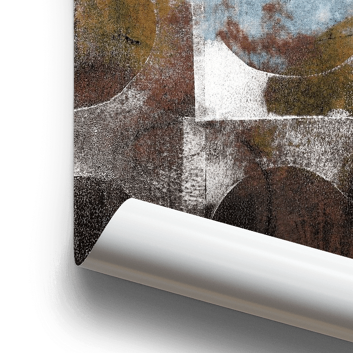 Achetez cette œuvre d'art abstraite Composition abstraite avec des cercles. Couleurs de la terre, bleu et blanc par Dina Dankers sur toile, aluminium, ArtFrame ou photographie (encadrée), impression d'art en haute qualité et tout format.