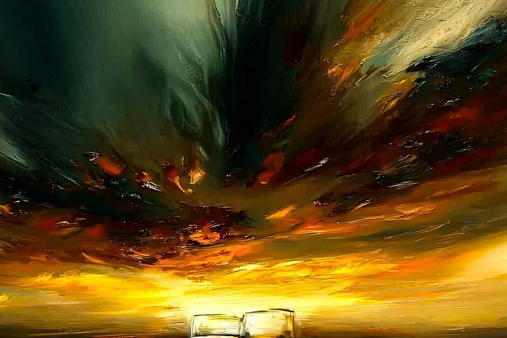 Cette œuvre d'art capture le drame et la chaleur d'un coucher de soleil dans un design abstrait intrigant. L'explosion dynamique des couleurs au-dessus de l'horizon, associée à la représentation sereine d'une table et de verres au premier plan, fait de ce tableau un véritable accroche-regard. Il est parfait pour créer une atmosphère chaleureuse et énergique dans votre intérieur. Accrochez-le dans votre salle à manger ou votre salon pour une touche inspirante et élégante qui ne manquera pas de captiver vos invités.