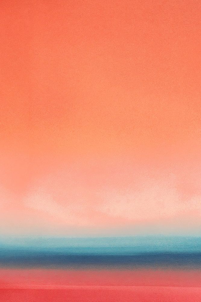 Une œuvre abstraite dominée par des teintes chaudes d'un rouge corail, interrompues par une subtile ligne horizontale turquoise qui la divise en deux. Les couleurs se fondent délicatement, créant une atmosphère onirique, presque mystique. L'œuvre respire la tranquillité et évoque un coucher de soleil stylisé sur un horizon infini.