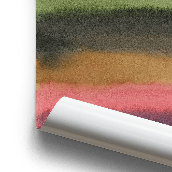 Coups de pinceau aquarellés en violet, rose, ocre, vert, bleu, violet et taupe.