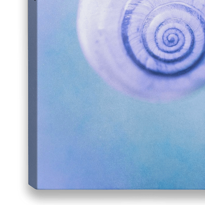 Photographie d'une coquille d'escargot dans des tons bleus et violets merveilleusement harmonieux.