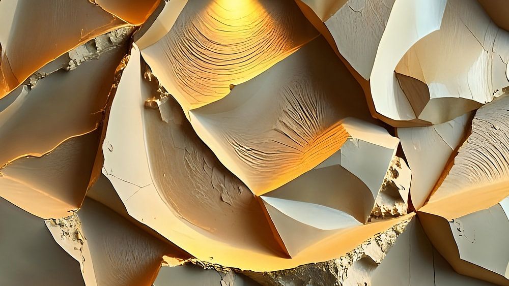 L'image d'arrière-plan montre un mur impressionnant en plâtre, doté d'une texture artistique et d'une multitude de motifs et de structures fascinants. La surface du mur est conçue de manière dynamique, avec de douces ondulations et des ajustements structurés qui créent une sensation de profondeur et de dimension. Cette structure en…