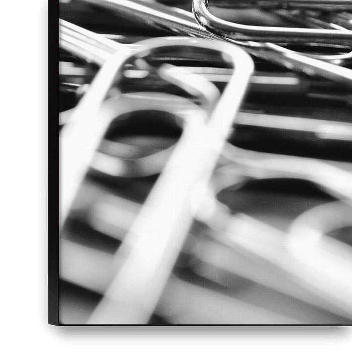 Macro de trombones en noir et blanc.