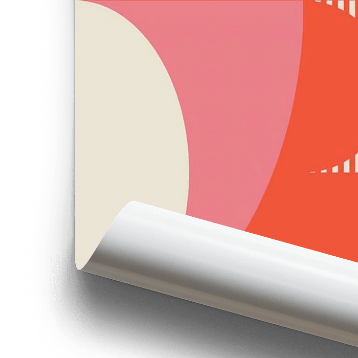 Achetez cette œuvre d'art Art déco Dessin géométrique rétro avec cercles et rayures en orange et rose par Dina Dankers sur toile, aluminium, ArtFrame ou photographie (encadrée), impression d'art en haute qualité et tout format.