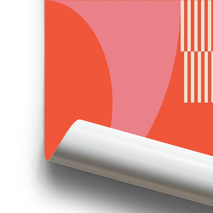 Achetez cette œuvre d'art Art déco Dessin géométrique rétro avec cercles et rayures en rose et orange par Dina Dankers sur toile, aluminium, ArtFrame ou photographie (encadrée), impression d'art en haute qualité et tout format.