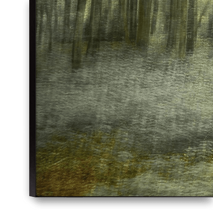 Paysage dans la forêt. Ici, nous avons utilisé le MCI, ou mouvement intentionnel de l'appareil photo, qui consiste à déplacer l'appareil dans une certaine direction à une vitesse d'obturation plus lente. Cela crée un effet dynamique et pictural.