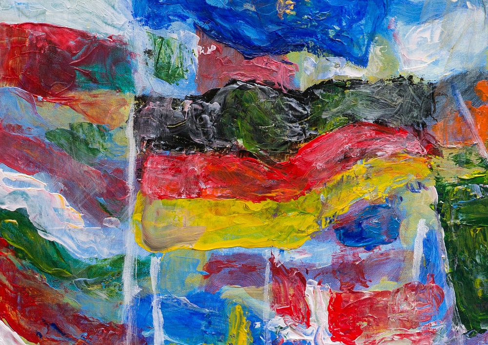 Peinture expressionniste des drapeaux européens hissés pour le succès du Fonds de relance de la Corona. Avec un pinceau libre, impression de drapeaux de l'Union européenne qui ondulent de manière expressive.