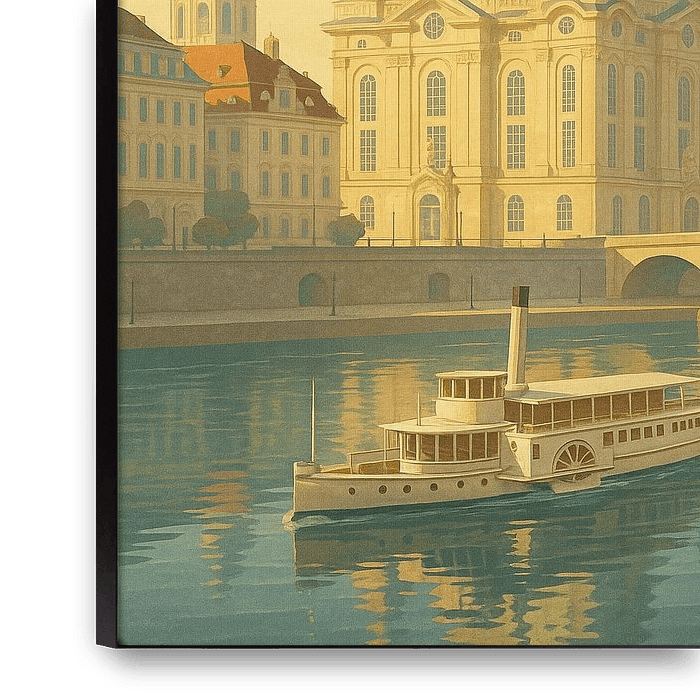 Achetez cette œuvre d'art de paysage Dresden Vintage Travel Poster - Art Deco Wall Art Print par Travel Shop sur toile, aluminium, ArtFrame ou photographie (encadrée), impression d'art en haute qualité et tout format.