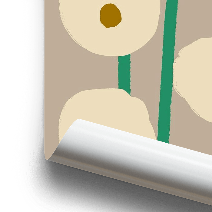 À propos de ‘Esquisses botaniques. Fleurs boho blanches sur des gris et des verts chauds.’ par Dina Dankers