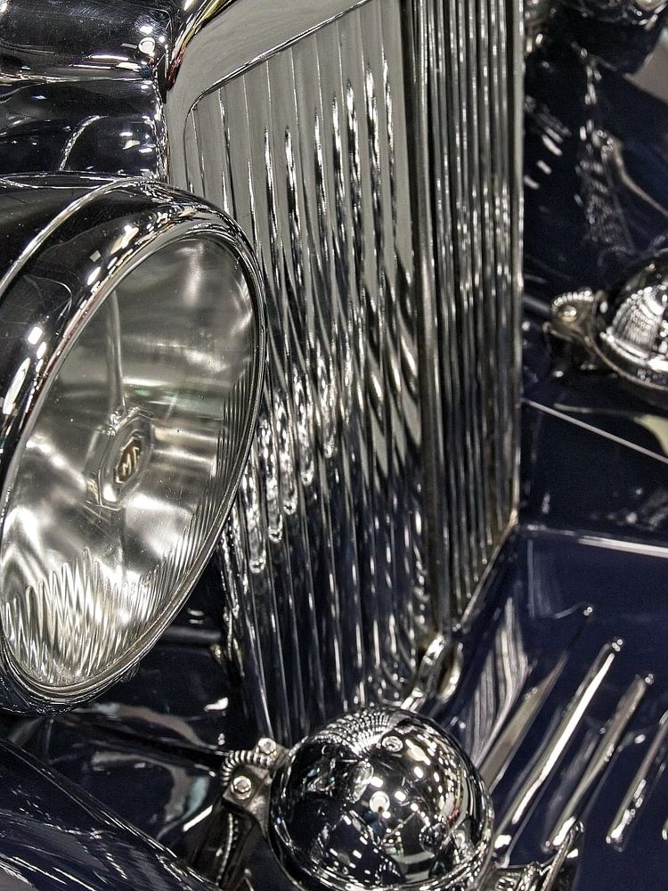 Beaucoup de chrome et de style à l'avant de cette MG classique d'Angleterre.