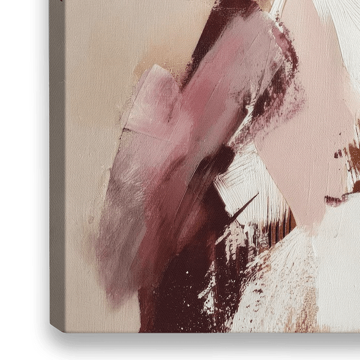 Une figure féminine abstraite et élégante dans un univers pastel doux de blush, de crème et de brun chaud. Des coups de pinceau lâches et expressifs et des couches de peinture créent une silhouette à la fois fragile et puissante. La partie supérieure sombre apporte contraste et texture, tandis que les couches légères, presque transparentes, qui l'entourent apportent de l'air et du mouvement. Le résultat est une œuvre d'art figurative moderne avec une sensation de luxe tranquille, comme si vous regardiez une illustration de mode peinte à la vie.