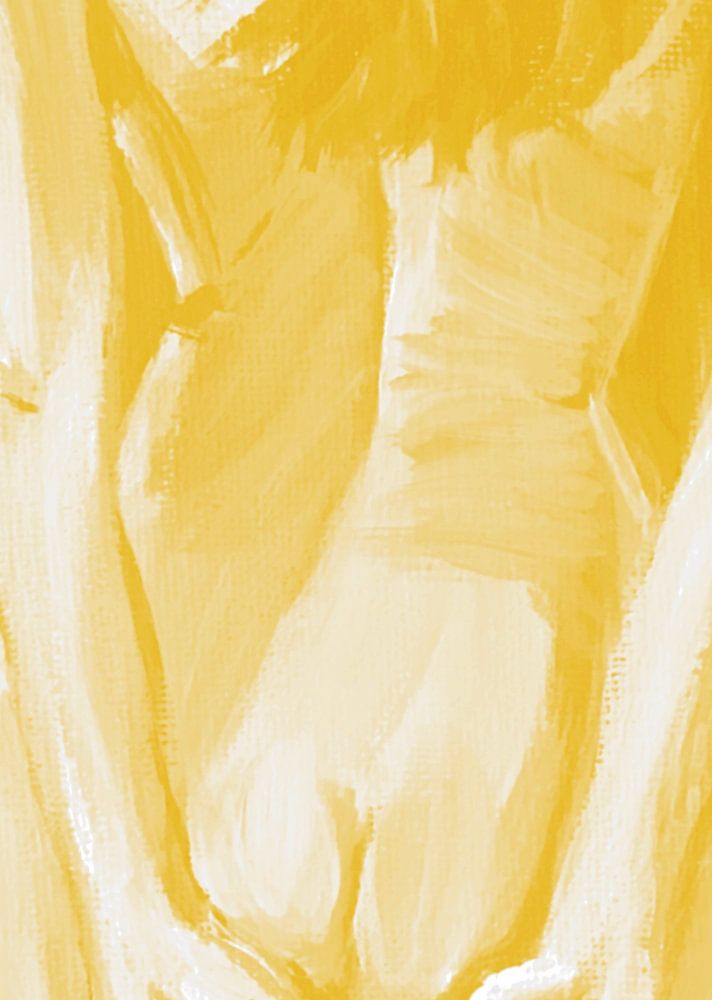 Peinture d'une femme nue, les mains derrière le dos. Elle s'éloigne calmement du spectateur et suit son chemin avec assurance. Ses longs cheveux ondulés coulent doucement sur ses épaules. Les ombres sur son dos et ses fesses contrastent magnifiquement avec la lumière vive sur le reste de son corps. Ce tableau a été peint à l'origine en nuances de gris, puis retravaillé par mes soins dans plusieurs variations de couleurs monochromes, comme ce joyeux jaune printanier. L'œuvre en niveaux de gris est également en vente. Elle se trouve dans la catégorie des peintures. J'ai placé cette œuvre et les autres variations de couleurs dans la catégorie art numérique car il s'agit d'une œuvre d'art éditée. La couleur que vous souhaitez n'est pas encore disponible ? Si c'est le cas, n'hésitez pas à m'envoyer un message et je verrai ce que je peux faire pour vous. Insta kristakitszart.