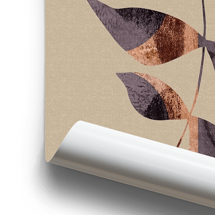 Graphiques modernes dans des couleurs neutres. Silhouettes de fleurs ou de feuilles. Collage de différentes textures. Style wabi-sabi. Brun rouille, tons et motifs terreux. Œuvres d'art pour un intérieur basique, scandinave, japonais, nouveau rural, romantique, boho, éclectique. Art pour un salon moderne, un bureau, une salle d'étude, une chambre ou un hall d'entrée.