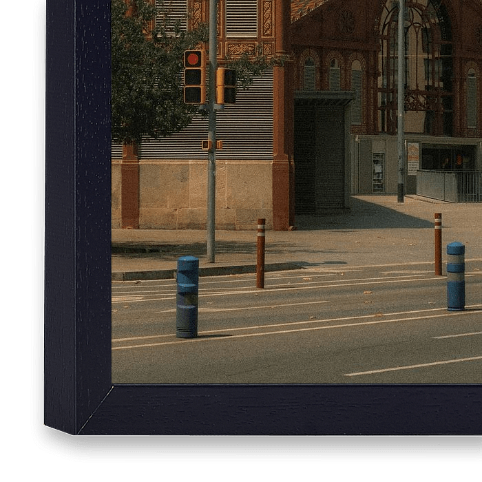 Cette image montre l'architecture fascinante du Mercat de Sant Antoni à Barcelone, Espagne. Les façades impressionnamment décorées, avec leurs motifs filigranes et leurs ornements détaillés, reflètent la riche histoire et l'héritage culturel de la ville. Au premier plan, des passants traversent les larges rues, la lumière et les ombres confèrent à la scène une profondeur atmosphérique. L'interaction entre les vieux bâtiments en briques, les panneaux de signalisation modernes et la vie quotidienne de la ville fait de cette photo un véritable accroche-regard pour les amateurs d'impressions urbaines et de photographie d'architecture. Barcelone est connue pour ses marchés uniques, ses quartiers animés et son charme méditerranéen, qui se combinent ici de manière impressionnante. En tant que décoration murale, le motif évoque des souvenirs de promenades décontractées dans les quartiers catalans, la dégustation de spécialités espagnoles et la joie de vivre de cette destination. La composition de l'image invite à la découverte et s'adresse aussi bien aux voyageurs qu'aux amateurs d'art qui apprécient le mélange particulier de tradition et de modernité. Idéal pour les appartements et les bureaux qui recherchent une atmosphère chaleureuse et vivante.
