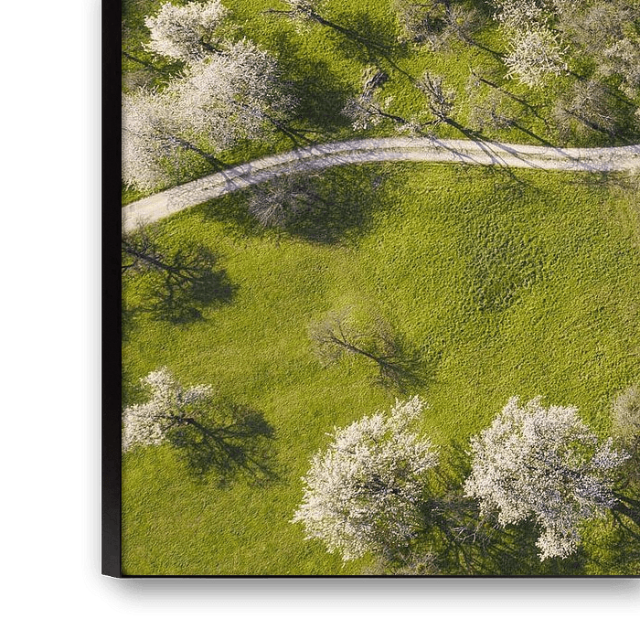 Arbres fruitiers en fleurs près d'Owen dans le Jura souabe, Bade-Wurtemberg, Allemagne.