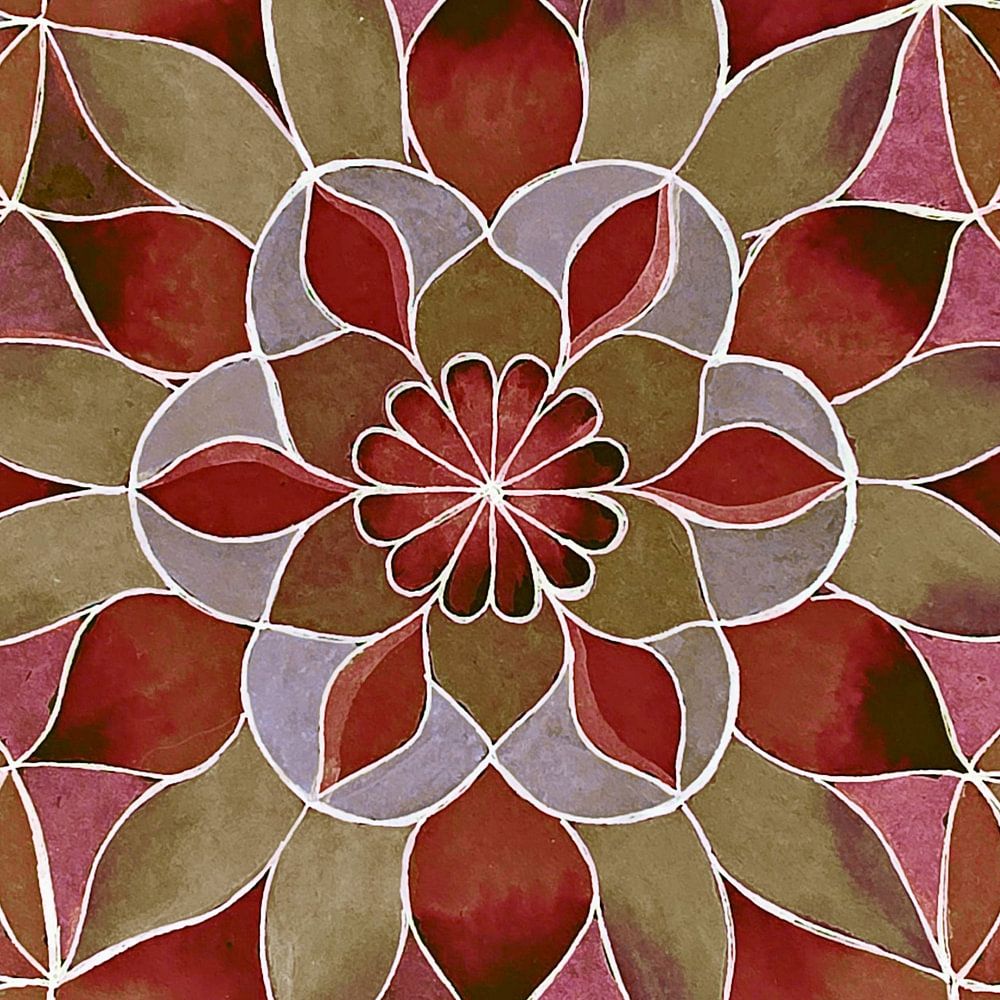 Mandala peint à la main, coloré avec amour à l'aquarelle. De délicates nuances de rose allant jusqu'au rouge bordeaux foncé alternent avec des verts et des gris harmonieux et discrets. Le mandala symbolise l'amour de la nature par la fleur centrale.