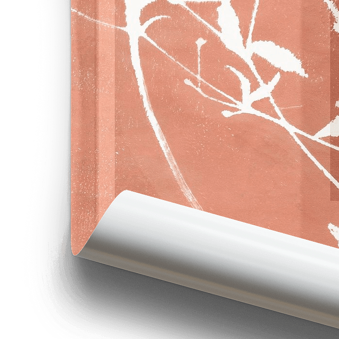 Art botanique abstrait de style rétro. Œuvre d'art mixte. Monotype de fleurs, plantes, feuilles combinées avec des textures, des formes abstraites et des lignes. Palette de couleurs rétro. Tons chauds de brun, corail, beige, terre et rouille. Œuvre d'art moderne convenant à un bureau, une salle d'attente, un hall ou un salon moderne. Design, Hôtel chique, Rural, New Rural, Minimaliste, Industriel, Shabby chic, Rétro, Romantique, Scandinave style de vie intérieur.