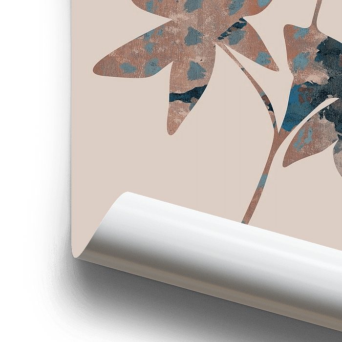 Graphiques modernes dans des couleurs neutres. Silhouettes de fleurs ou de feuilles. Collage de différentes textures. Style wabi-sabi. Brun rouille, tons et motifs terreux. Œuvres d'art pour un intérieur basique, scandinave, japonais, nouveau rural, romantique, boho, éclectique. Art pour un salon moderne, un bureau, une salle d'étude, une chambre ou un hall d'entrée.