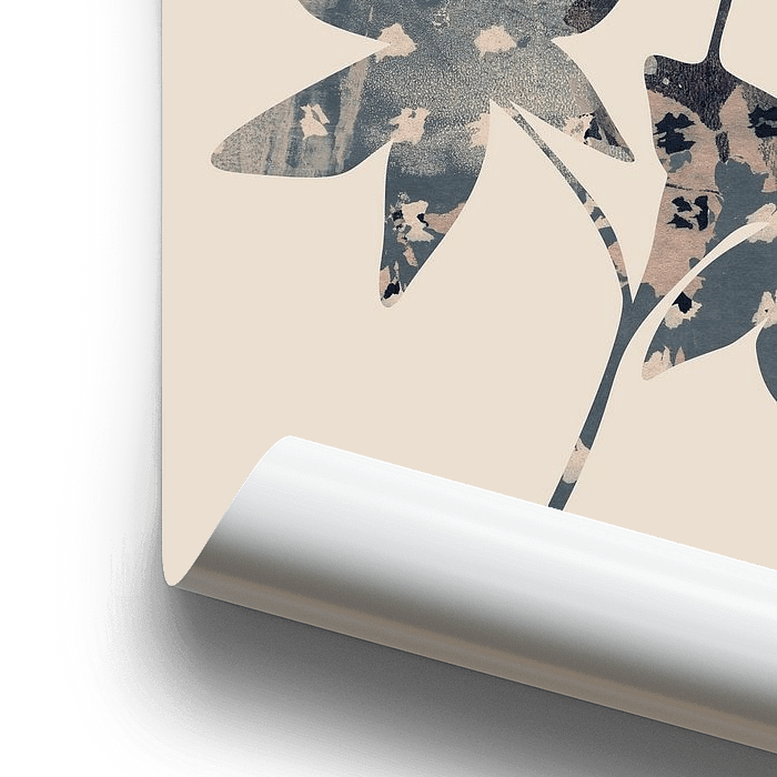 Graphiques modernes dans des couleurs neutres. Silhouettes de fleurs ou de feuilles. Collage de différentes textures. Style wabi-sabi. Brun rouille, tons et motifs terreux. Œuvres d'art pour un intérieur basique, scandinave, japonais, nouveau rural, romantique, boho, éclectique. Art pour un salon moderne, un bureau, une salle d'étude, une chambre ou un hall d'entrée.