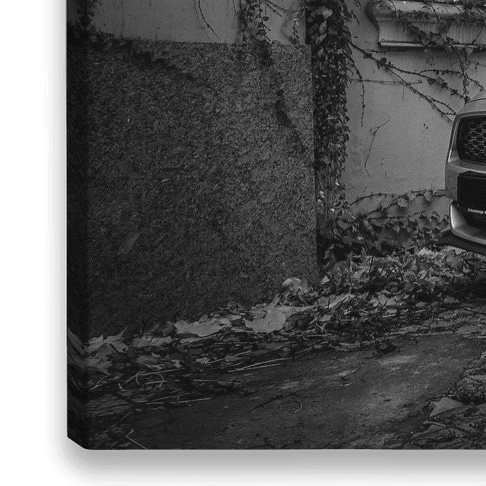 Photo difficile en noir et blanc de la célèbre et magnifique Ford Mustang. La version sur cette photo est celle de la sixième génération.