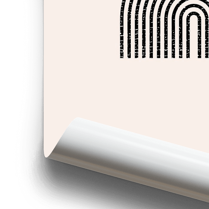 Affiche rétro vintage de style Bauhaus avec une forme géométrique en noir sur fond beige. Art moderne minimaliste. Années 70, forme en U, arc, vie simple