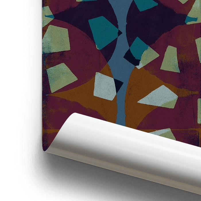 Achetez cette œuvre d'art abstraite Formes abstraites en violet, ocre, bleu et jaune, Retro living. par Dina Dankers sur toile, aluminium, ArtFrame ou photographie (encadrée), impression d'art en haute qualité et tout format.