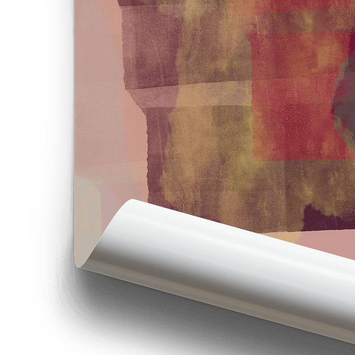 À propos de ‘Formes abstraites rouge bordeaux, aubergine, jaune et rose.’ par Dina Dankers