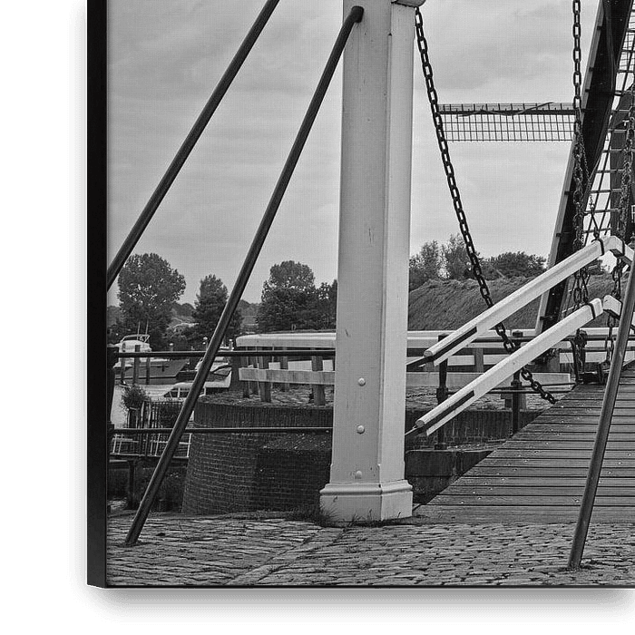 Pont basculant avec moulin à vent à l'entrée du port de la Bergsche Maas dans la ville fortifiée de Heusden dans le Brabant-Septentrional (Pays-Bas).