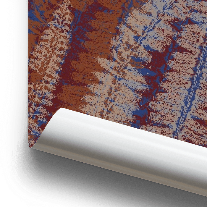 Fougères Terra, rouge vin, bleu cobalt I. Art botanique moderne.