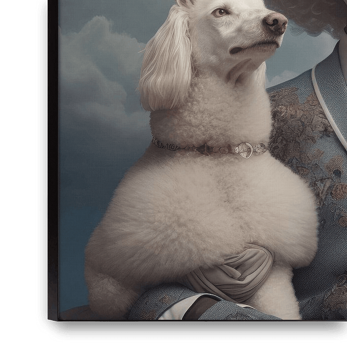 Deze surrealistische voorstellingen van vorstelijke personen, met hun kenmerkende witte pruiken, en hun trouwe viervoeters, geïnspireerd op de grandeur van de 17e-eeuwse Hollandse meesters, zijn werkelijk een visueel festijn van historie, verfijning en verbeelding. Stap in de weelde van mijn schilderijen, waar vorstelijke personen gehuld in indrukwekkende gewaden en getooid met witte pruiken de hoofdrol spelen. De pruiken, met hun weelderige krullen, vormen een opvallend contrast met de gedetailleerde gezichtsuitdrukkingen van de geportretteerde personen. De minutieuze aandacht voor de nuances van de pruiken, geïnspireerd op de portretten van de oude meesters, getuigt van een diep respect voor de ambachtelijke technieken van die tijd. De vorstelijke personen, gehuld in weelderige stoffen en versierd met juwelen die schitteren als sterren, stralen een majestueuze trots uit. Ze lijken rechtstreeks uit een koninklijk portret van weleer te zijn gestapt, met een waardigheid en allure die de grootsheid van vervlogen tijden weerspiegelen. Maar de ware magie van deze kunstwerken komt tot leven met de toevoeging van de viervoeters. Deze honden, met hun elegante postuur en levendige ogen, worden niet zomaar als accessoires toegevoegd, maar spelen een integrale rol in het verhaal dat zich ontvouwt. Ze lijken een verlengstuk van de vorstelijke personen, met een unieke persoonlijkheid die de sfeer van het schilderij verder verrijkt. Het kleurenpalet dat ik hebt gebruikt, doet denken aan de rijke tonen die de Hollandse meesters zo meesterlijk beheersten. Diepe, warme tinten worden afgewisseld met subtiele schaduwen en lichtaccenten, waardoor de scènes een levensechte diepte krijgen. De textuur in de stoffen en de haren van de honden geeft de toeschouwer bijna het gevoel dat ze het doek kunnen aanraken en de weelde van het tafereel kunnen ervaren. In deze kunstwerken heb ik niet alleen een eerbetoon gebracht aan de grandeur van de 17e-eeuwse Hollandse meesters, maar ook een eigentijdse draai gegeven aan het historische portretgenre. Mijn met AI vervaardigde meesterwerken zijn een ware symfonie van esthetiek en verbeelding, waarin het heden en verleden harmonieus samensmelten. Een briljante creatie die niet alleen de kunstgeschiedenis omarmt, maar ook een nieuwe dimensie toevoegt aan de tijdloze schoonheid van vorstelijke portretten.