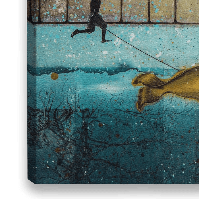 Who is whose imaginary friend? A little boy on the beach, having fun with a whale. All of my artworks are inspired by weathered walls with posters, peeling paint and all kinds of things in dilapidation. I try to create something new, something beautiful with these elements. This particular artwork is part of the Collages series.…