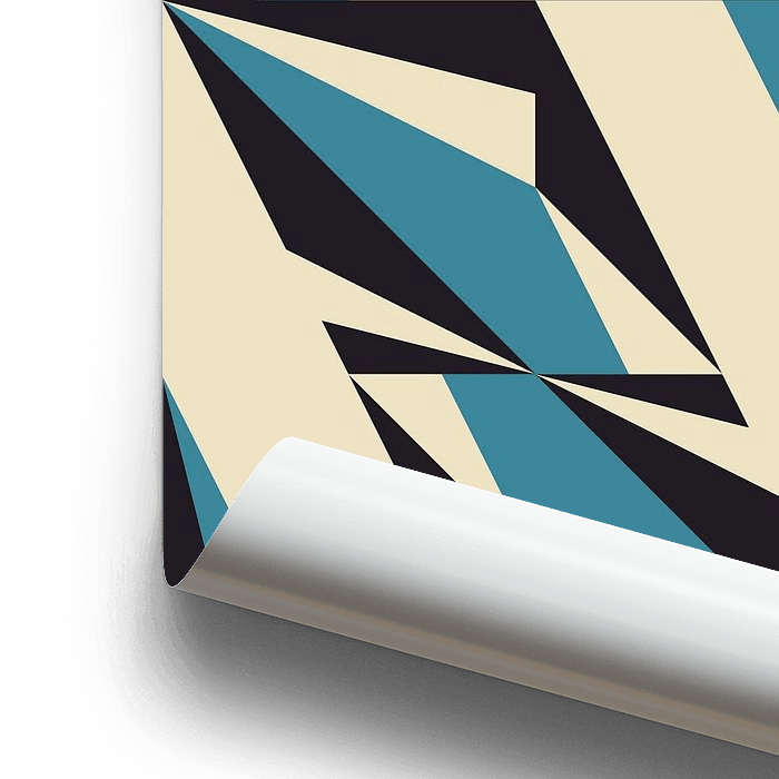 Achetez cette œuvre d'art abstraite Géométrie rétro avec triangles dans le style Bauhaus en bleu, noir et blanc. par Dina Dankers sur toile, aluminium, ArtFrame ou photographie (encadrée), impression d'art en haute qualité et tout format.