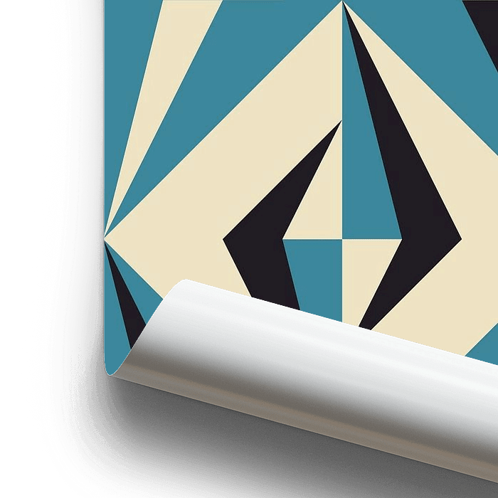 Achetez cette œuvre d'art abstraite Géométrie rétro avec triangles dans le style Bauhaus en bleu, noir par Dina Dankers sur toile, aluminium, ArtFrame ou photographie (encadrée), impression d'art en haute qualité et tout format.
