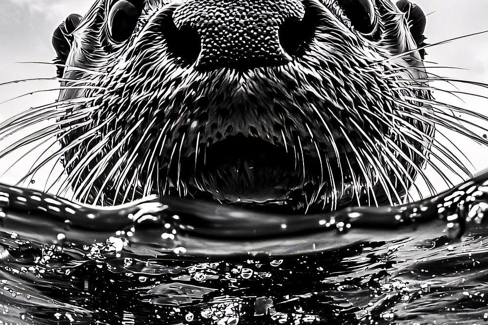 Gros plan sur une loutre en noir et blanc par Art & Soul Creations